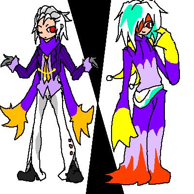 瞳は赤、前髪をオールバックにした銀髪。