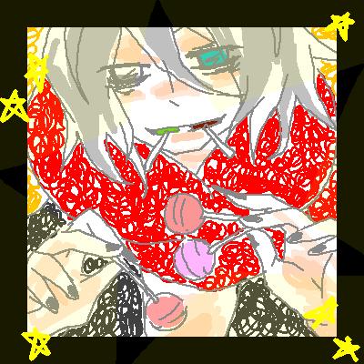 彼が本日欲張って二本もくわえている飴は、片方はチョコ、片方は柚胡椒です。